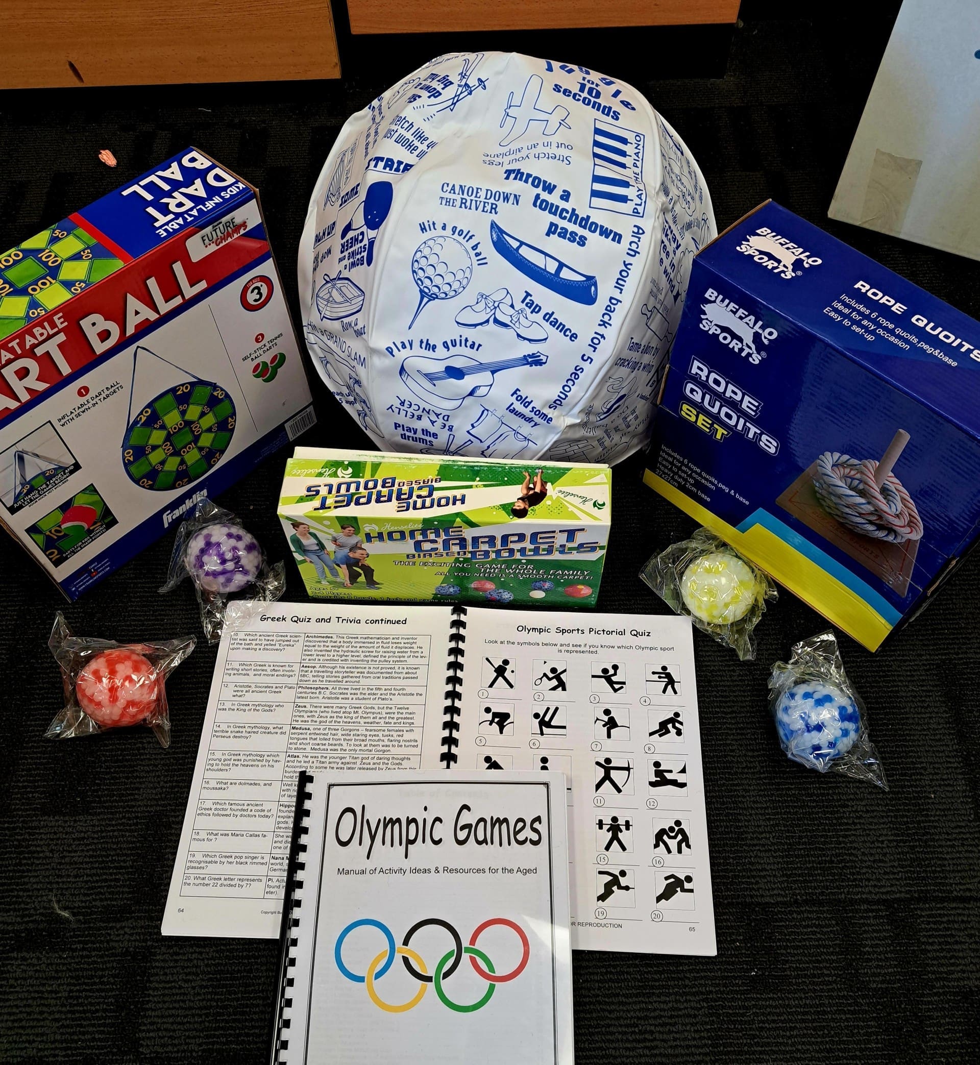 A spiral-bound manual includes Olympic Games trivia, sport history, highlights from previous Games, quizzes, crosswords, and word games, plus practical ideas for staging your own Mini-Olympics with modified games suited to nursing homes, hostels, day centres, and retirement villages. Also available in PDF and CD format for convenient printing.