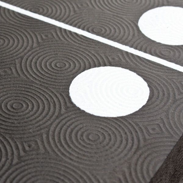 - Markings: High-contrast white dots on black tiles with tactile raised dot surface