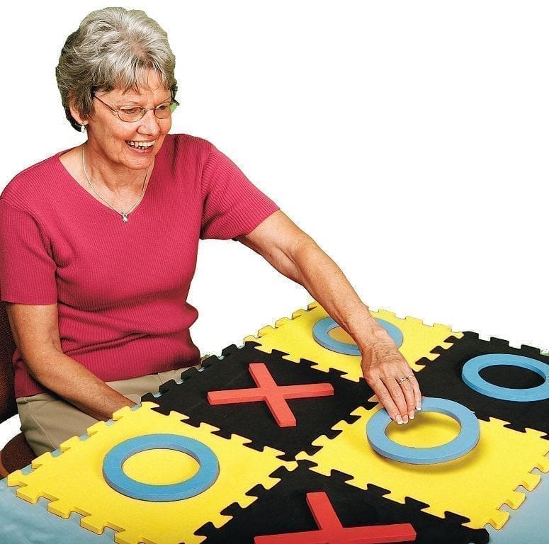 A well-loved traditional game, in jumbo size with brightly coloured, easy to grip textured foam. Ideal for a table game for two people, young or old and linking together the square base pieces can also be part of the activity. Fun to play with family, friends, visitors and care staff.