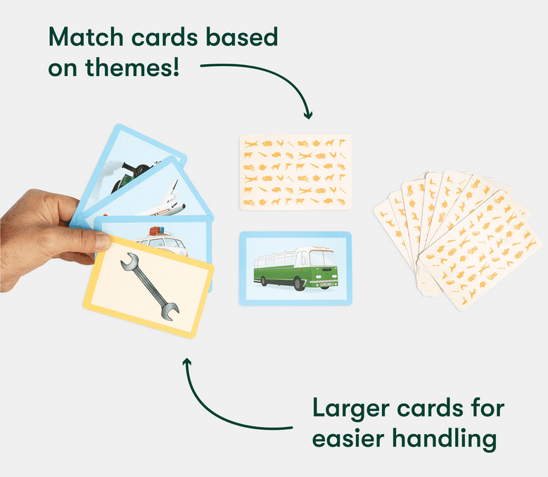 The cards have all be designed with high colour contrast and easily recognisable images that support people with dementia to play each game without assistance. The three different difficulty levels ensure this game is suitable for people with early or mid stage dementia.