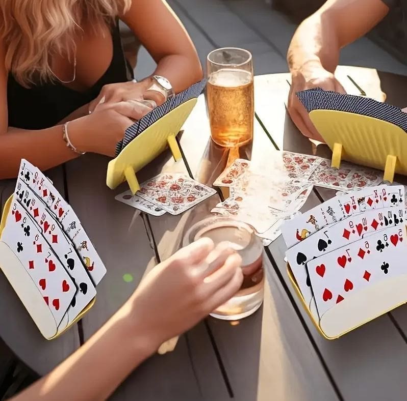 Our Plastic Playing Card Holder is now in an extra large size 18cm wide with fold out legs, making it easier to see and use with out holding- great for people with dementia or reduced hand strength.