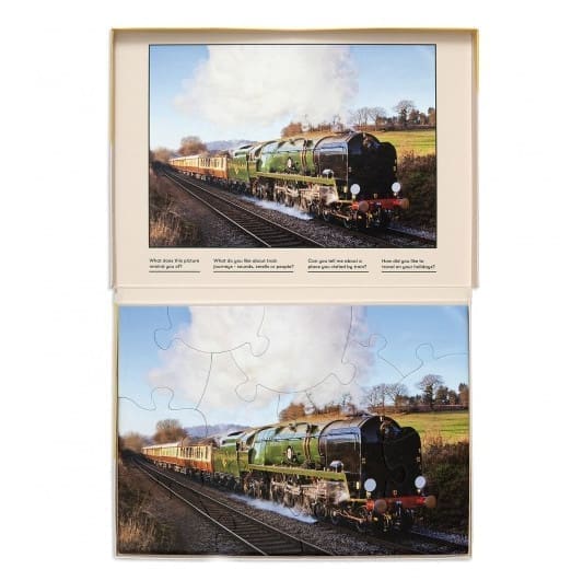 This 13p large piece jigsaw puzzle – Orient Express, is suitable for the person in the middle stages of their dementia journey, with an image that is a tool to share memories and provide a sense of achievement. The image is age appropriate, enabling engagement of the person with dementia without being childish or patronising.