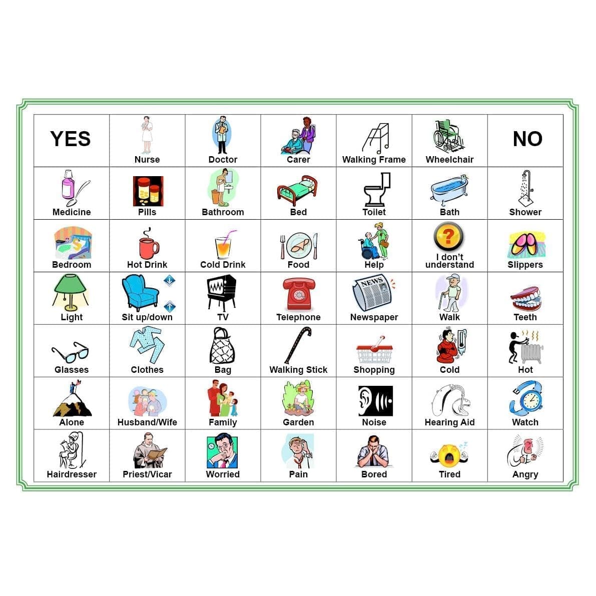 Our Dementia and Communication Board has been designed by Activities to Share to meet the needs and wishes of people with speech and language difficulties.