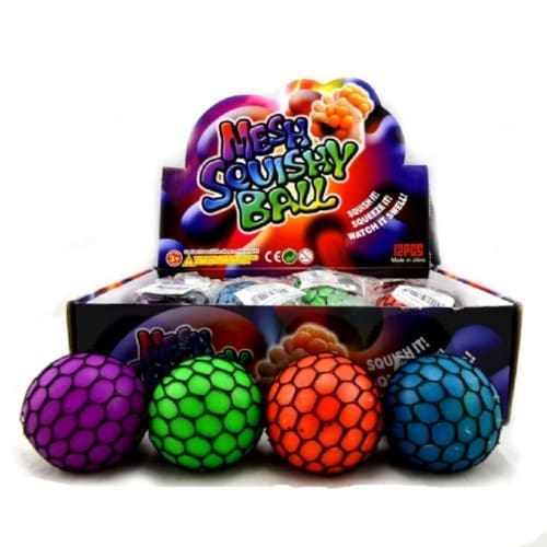 Squeeze this liquid filled fidget ball to watch bubbles of a different color pop out from the mesh net. The squishy mesh ball looks like a handful of fun rubbery grapes when squeezed hard. Plus, it makes a squishy gurgling sound with each squeeze. NB Price is for one ball. Specific colours cannot be requested when ordering.