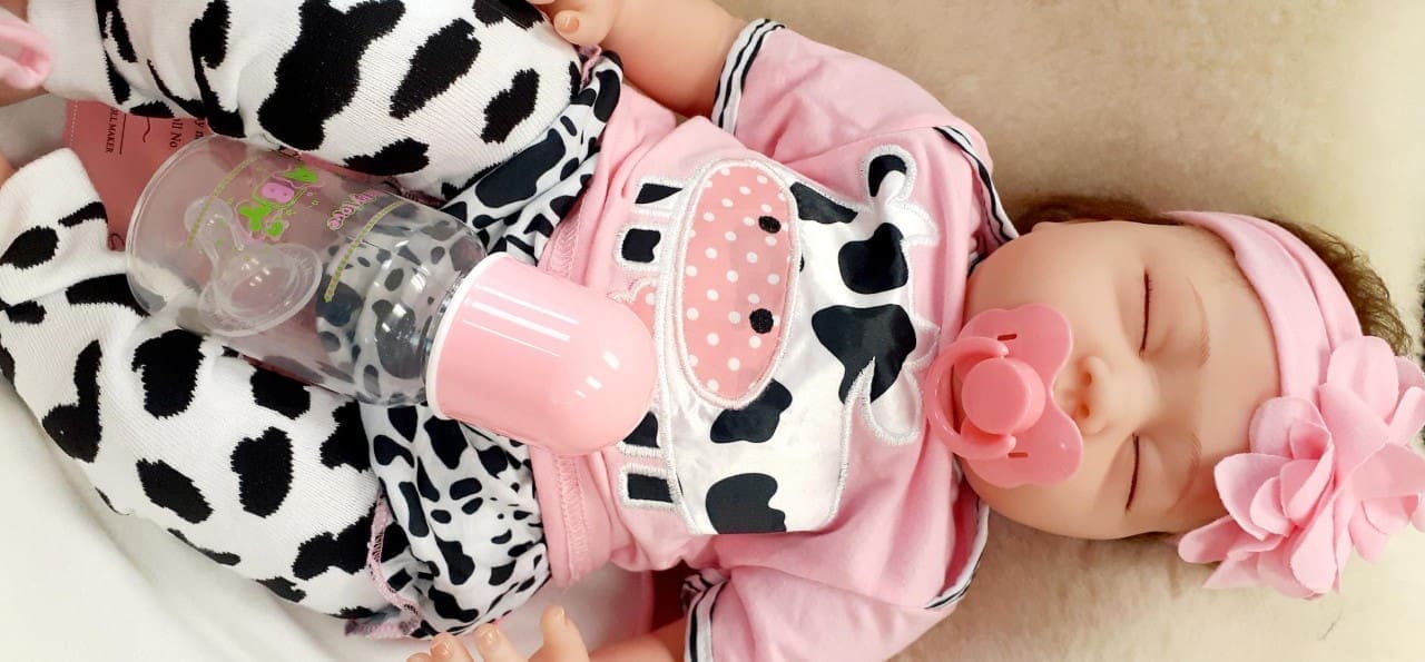 care instructions, clothes (either pink oneie or cowprint shirt and pants – NB cannot be specified) , magnetic pacifier and bottle.