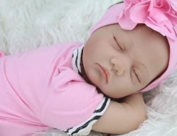 Baby girl doll – Little Miss Muffet is a sleeping baby doll suitable for use in child representation therapy. She is made with a gentle touch soft silicone vinyl head and 3/4 limbs. The cuddly cloth body is filled with polyester fibre filling. The doll is able to be posed. Hair is embedded mohair which is washable. Very lightweight i.e not realistic weight for size however is suitable for the frail person living with dementia to hold and cuddle.